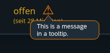 Have a distinct color for the state when a message is set, combined with a “⚠” (U+26A0), which holds the message in a tooltip or something like that.