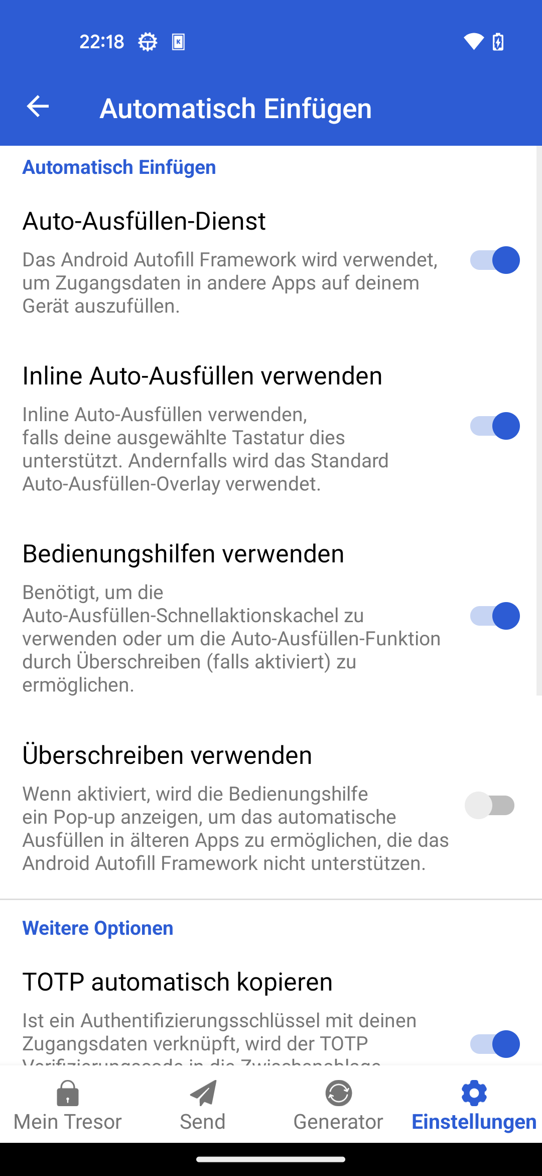 neues Eintrag für Passwortmanager und 2. Faktor